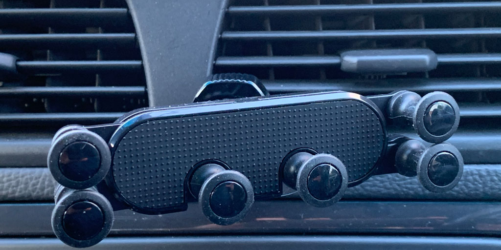 The holder can be attached to any car air vent so long as it has vertical or horizontal slats and can be adjusted virtually to any angle to suit the driver.